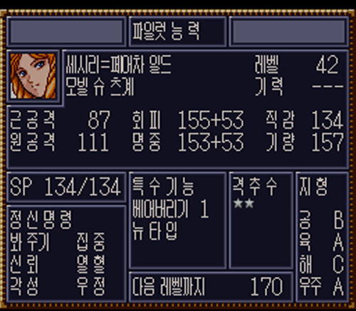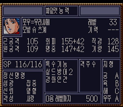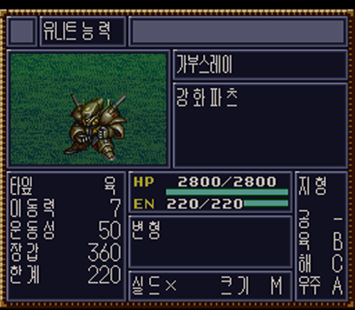 어렸을때는 슈퍼계가 처음에 강력해서 무조건 슈퍼계로 하고 서바인, 빌바인, Z건담 만 키워서 고생했는데 이번에 해보니까 골고루 키우는게 얼마나 중요한지 깨달았다. 물론 이 작품은 PP도 스킬도 없이 무조건 레벨업만 시켜주면 되는 시스템이라서 보조 파일럿도 맵병기 한번에 레벨업이 가능하지만...