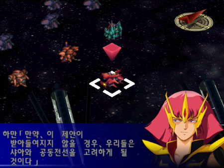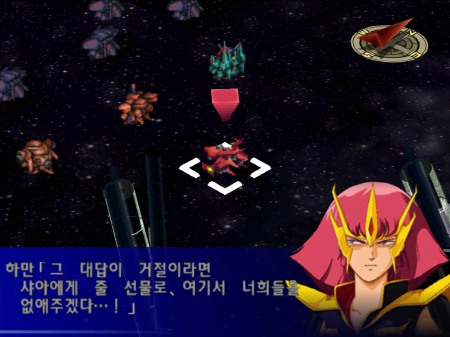 이성인 암흑사천왕과 전투가 시작되는데 이번스테이지는 적들과 전투보단 분기가 중요한 스테이지라서 난이도 자체가 어려운 스테이지는 아니다. 대신 숙련도 조건에 턴 제한이 있어서 숙련도 조건을 만족시키려면 시작부터 모든 기체들이 가속을 쓰고 이동하는 것을 추천한다.