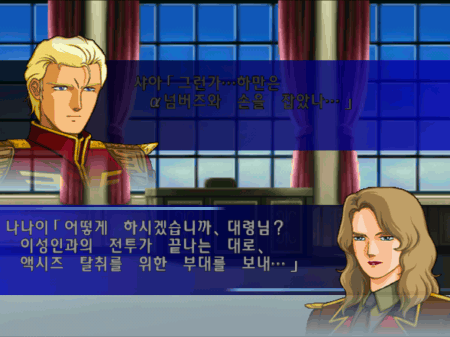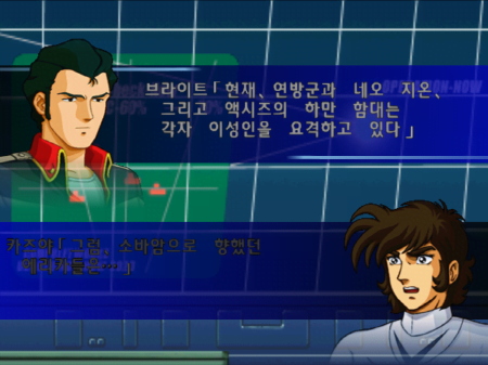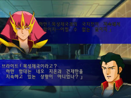 우주로 올라온 일행들이 소행성 콜로니에 공격받고 있는 상황이다. 평화회담을 목적으로 한 오르판 타도 계획은 실패했으며, 출동한 시넵스는 철수하고 재차 공격에 대비하기 위해 올라왔다고 언급한다. 브라이트는 이성인들의 존재를 인정하면서 엑시즈의 한 부대와 샤아를 견제할 필요성을 강조한다. 이 시점에서 이성인들의 부대가 정체를 드러낸다는 정보가 추가로 들어온다.